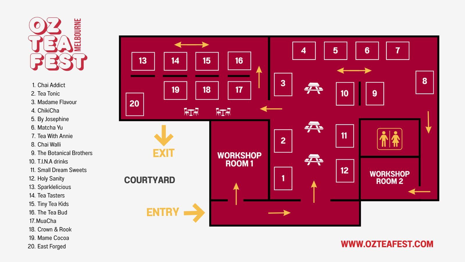 FESTIVAL LINEUP - tea sellers and friends. Map of the stalls below